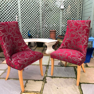 And so it was for a recent client who had fond memories of their dining chairs. The quality of the wood and design was undeniable, but the fabric was faded and the foam and board had definitely seen better days. Having made up their mind that the chairs needed some tlc if they were to stay, the hunt was on for some worthy fabric. We worked through some samples that made it plain what they didn't want, so when the right fabric appeared it was an easy choice ! Et Voila ! Stunning fabric gave these chairs the makeover they needed and now they take pride of place.