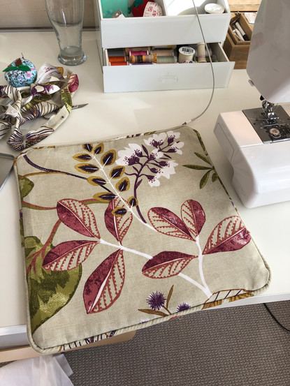 Right now, I'm in the middle of creating some new cushions for an outdoor sofa and a chair. But last year I was able to recover some tatty seat pads and make some new cushions for a client with a rather striking fabric found in the local fabric shop in the sale. A quick spray with a waterproof conditioner meant that they were suitable for outdoor use. Although, I would recommend you keep them undercover when the rain comes, to prevent a soggy bottom !